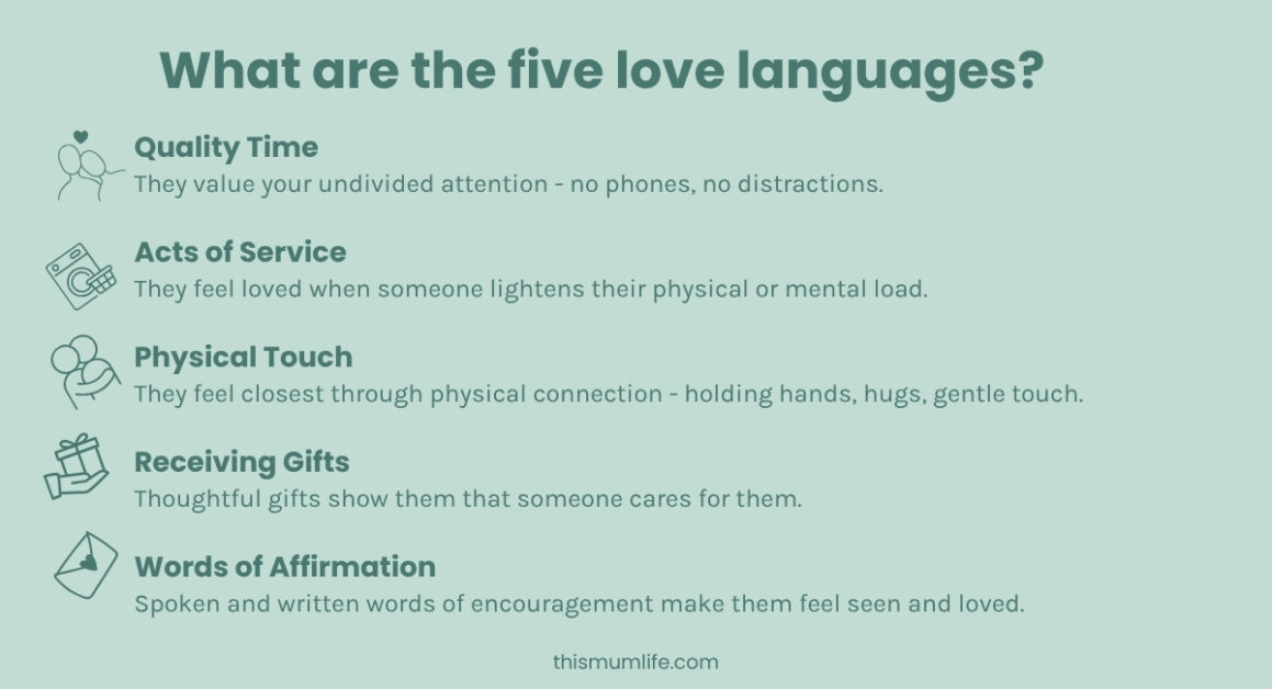 LOVE LANGUAGES FOR NEW MUMS – CHEAT SHEET (pin it for later)